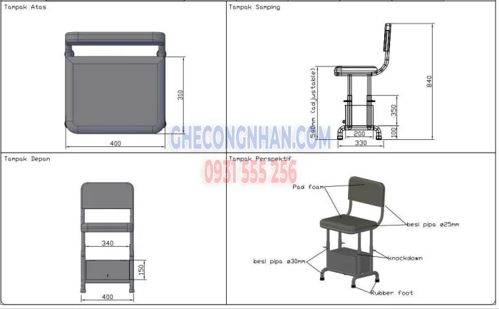 Chất liệu: Mặt ghế + lưng tựa bọc nệm